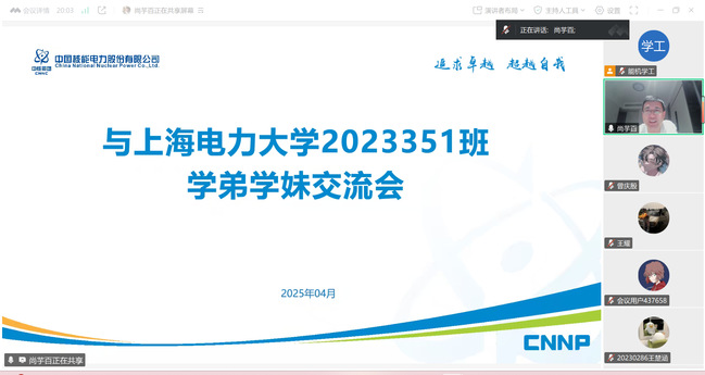 为深化校企协同育人,充分发挥校友职业引领作用,助力学子把握核能行业前沿、规划职业发展,进一步拓宽行业认知边界、锚定人生航向,4月24日,WilliamHill官方网站2023351班通过腾讯会议平台举办“核聚英才·共筑未来”校友职业成长导师交流会。2023351班校友职业成长导师、2008届热能与动力工程专业校友、福建福清核电有限公司运行值长尚芋百担任主讲嘉宾,与核工程与核技术专业学子共叙行业脉搏,共绘职业蓝图,会议由辅导员仝晶晶主持。