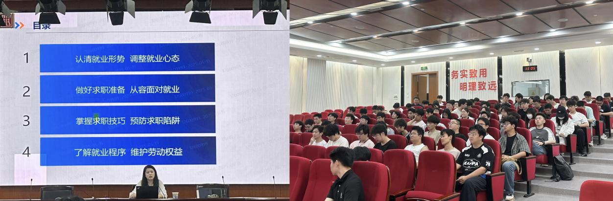 讲座伊始,徐庆雯指出目前就业结构性矛盾依然突出,但能源行业在国家“双碳”战略推动下迎来发展机遇,鼓励学生坚定专业自信,主动融入国家能源事业需求。徐庆雯围绕“求职准备—面试实战—权益保障”主线,系统解析求职关键环节:一是求职准备要充分,强调“精准定位”与“信息甄别”,建议学生通过政府平台、校企合作渠道及行业动态获取有效就业信息;二是面试技巧要精准,分析了企业面试时的考察要点,指出“逻辑表达”“专业能力”与“问题解决能力”的重要性;三是权益保障要用心,对比《就业协议书》与《劳动合同》的法律效力,详解试用期规定、社保缴纳等条款,同时结合真实案例,提醒学生警惕“付费内推”“虚假高薪”等求职陷阱。
