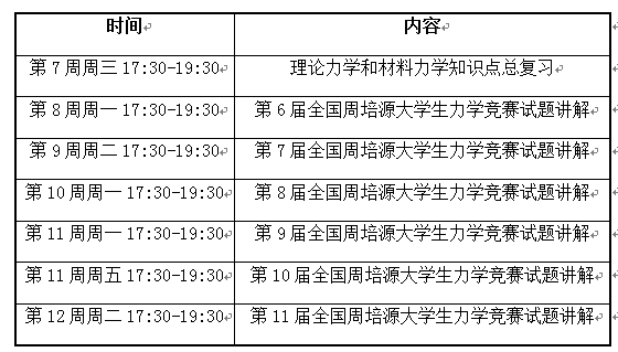 参加全国第12届周培源大学生力学竞赛辅导安排