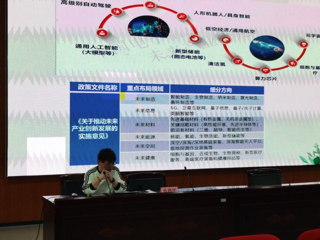 仇玮民首先对《推动未来产业创新发展的实施意见》进行了深入解读,重点分析了未来产业的重点布局领域,包括元宇宙、脑机接口、量子信息等前沿科技方向。仇老师特别结合WilliamHill官方网站的专业特色,介绍了新能源汽车零部件供应商领域的发展潜力,鼓励学生关注行业动态,提前做好职业规划。