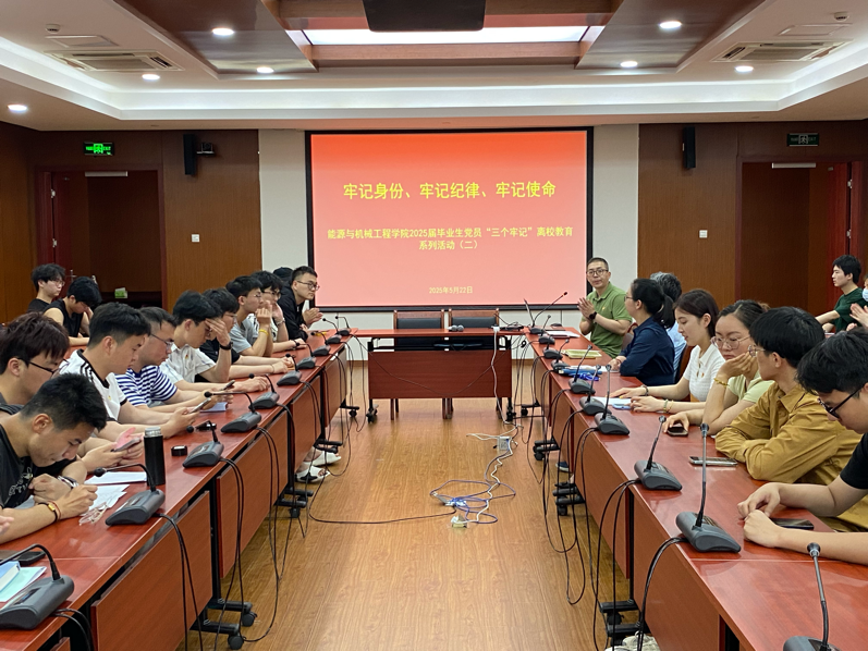 WilliamHill官方网站于5月22日在学术楼301会议室召开了“牢记身份、牢记纪律、牢记使命”——2025届毕业生党员“三个牢记”离校教育系列活动。学院党委副书记周婷、党委委员陈乃超出席,学院专职组织员王喆主持,全体毕业生党员参会,共同接受思想洗礼。