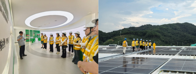 当日下午,实践团前往华润怡宝南平生产基地。在透明化生产车间,学生见证了一瓶矿泉水的全自动灌装、质检流程,感受智能化制造的精益标准。登上厂区顶楼,连片光伏发电板引人驻足。工程师现场讲解“光能→电能”的转换原理,揭示怡宝如何将清洁能源融入生产体系,实现绿色低碳运营。