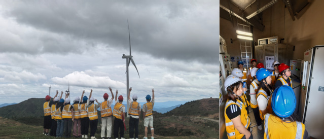 7月19日,师生奔赴华润振福风电场。科普宣传片生动展现风力发电的核心技术与环保价值。在海拔千米的机位平台,百米高的巨型风机近在眼前,运维工程师解析叶片气动设计、机组智能监控系统等关键技术,并演示日常维护流程。“课本中的流体力学、电力控制知识,在这里变成了可触摸的现实。”一名学生感慨道。