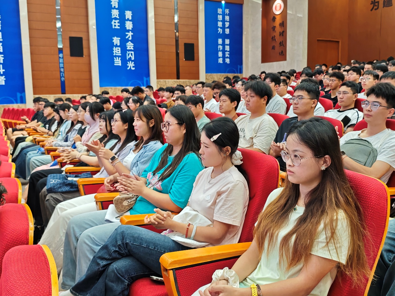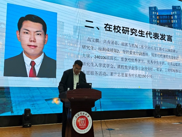 在校生代表高宝麟以“过来人”视角分享了成长心得;新生代表沈亿轩代表全体新生表达了将以严谨求实的态度投身学术、追求卓越的坚定信念。