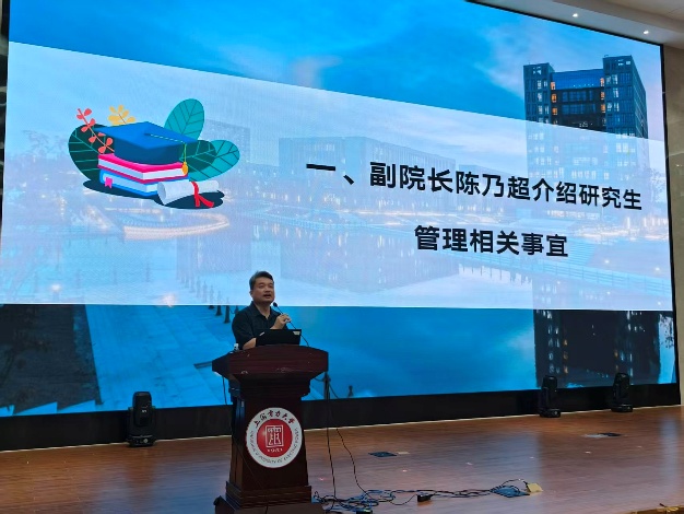 陈乃超向全体新生详细介绍了学院各项基本情况,以及研究生日常管理相关规定。