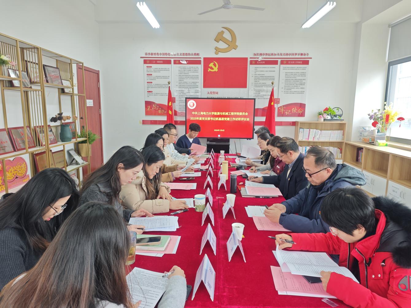 能机学院10个党支部书记依次述职,各党支部书记围绕年度党建工作重点任务,汇报了支部在思想建设、组织生活、党员发展、党建与业务工作融合等方面的成绩。述职过程中,各支部既展示了工作亮点,也深刻查摆了问题。联系党支部的党委委员结合党支部实际,逐一进行点评,强调要进一步加强政治建设,推动党建工作与学院中心工作深度融合,打造特色品牌,提升支部凝聚力和战斗力。