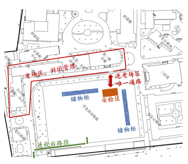 (4)考点在考试封闭管理区域附近设置了手机存放柜,供考生集中存放。考生将手机等禁止带入考场的电子产品锁入储物格中(每个考生使用1个储物格),钥匙暂由考生本人保管。建议考生将储物格钥匙保管好放置考场教室外,避免进入考场教室时,触发金属探测仪安检报警声,造成反复安检。