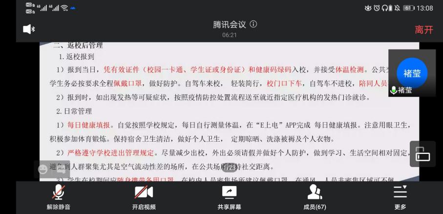 最后,结合上学期末的暑假作业,辅导员们分别根据不同年级和班级进行了学风建设、职业发展、校园生活等方面的答疑解惑,解决了同学们对返校标准及要求以及开学后的相关工作的疑问,如大二学生的补考、转专业考试和军训事宜,大三学生的考研动员和大四学生秋季招聘就业准备和职业技能提升、结合上学期期末成绩的学业预警、校园快递收取等学业和生活问题。