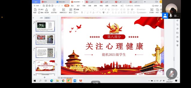 2021级辅导员赵贵青着眼于疫情下心理焦虑问题,通过网络视频带领班级同学感受积极向上的正能量,并分享了提升心理免疫力的相关方法,引导班级学生以积极的态度面对疫情。2020级辅导员杨丽媛对近期课堂出勤率及课堂表现进行了反馈总结,并邀请班主任李冬、吴炳辉、邹晓阳为班级同学讲解线上学习的相关注意事项,并对同学们提出线上学习的期许,希望同学们在疫情期间能够认真对待云课堂,做到线上学习不打折。此外,杨丽媛还邀请了已成功签约中广核的两位大四同学梁言、刘荣东,为大家讲解求职技巧,鼓励同学们早日树立生涯目标,并付诸行动,收获未来。2019级辅导员仝晶晶则与班级同学交流了文体娱乐的方式,了解到班级同学在准封闭管理期间的娱乐生活丰富多样,或是练习书法,或是象棋博弈,亦或吉他弹唱,既遵守了学校疫情防控规定,又极大地丰富了寝室生活。2018级辅导员姜妍丽、张鸿燕则围绕春招就业作了重点强调,围绕目前班级的就业情况、就业存在的问题以及就业渠道进行了一一讲解,鼓励广大毕业生正确看待疫情带来的就业难问题,积极利用线上双选会的就业契机,主动投递简历,为自己争一个选择的机会。研究生辅导员韩林岑就疫情下如何做好学习科研工作与班级同学进行了交流,各班同学积极献言建策,共度艰难时刻。