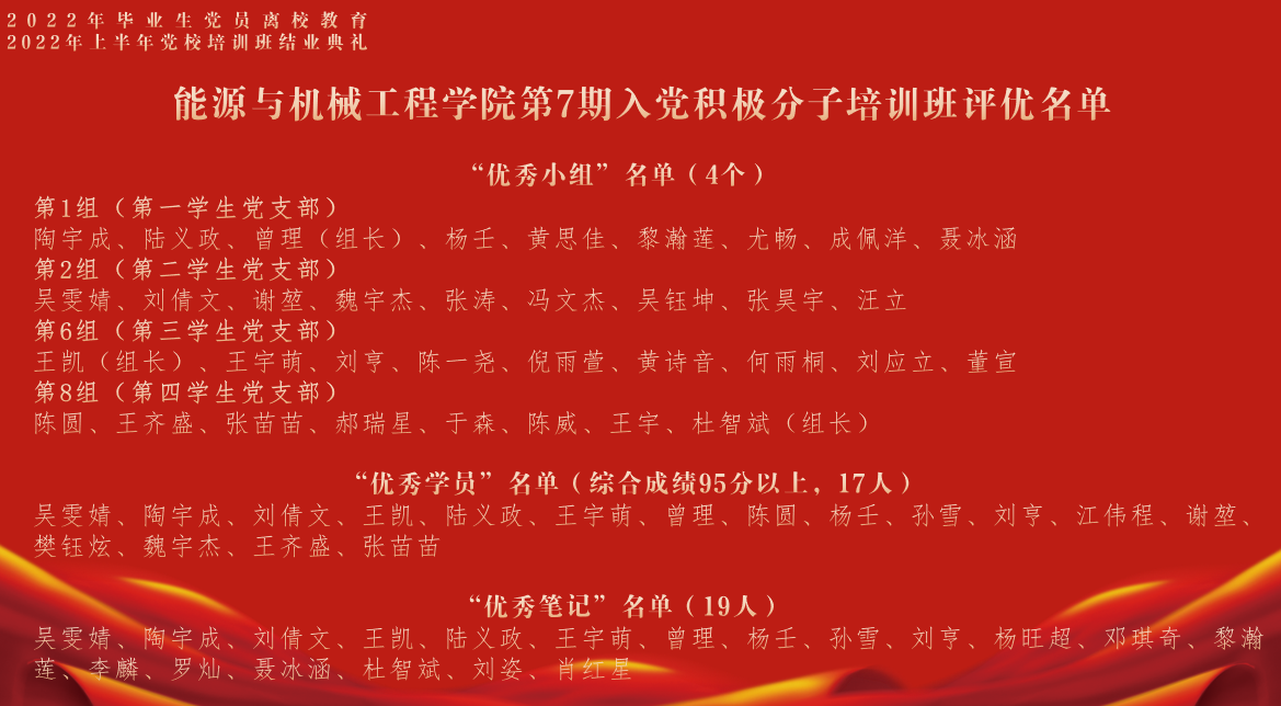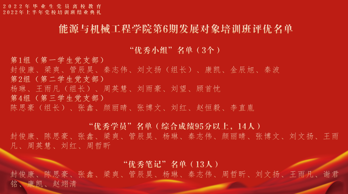 李凯同学作为毕业生党员代表,总结回顾了在校的学习生活,表示了对学校和学院的感谢,并表示将努力奋斗,回报母校与社会;入党积极分子培训班优秀学员代表吴雯婧、发展对象培训班优秀学员代表陈思豪分别发言,总结了本次党校培训班的心得体会,并为毕业生党员送上祝福,同时表达了向毕业生党员学习的决心,争取早日加入党组织。