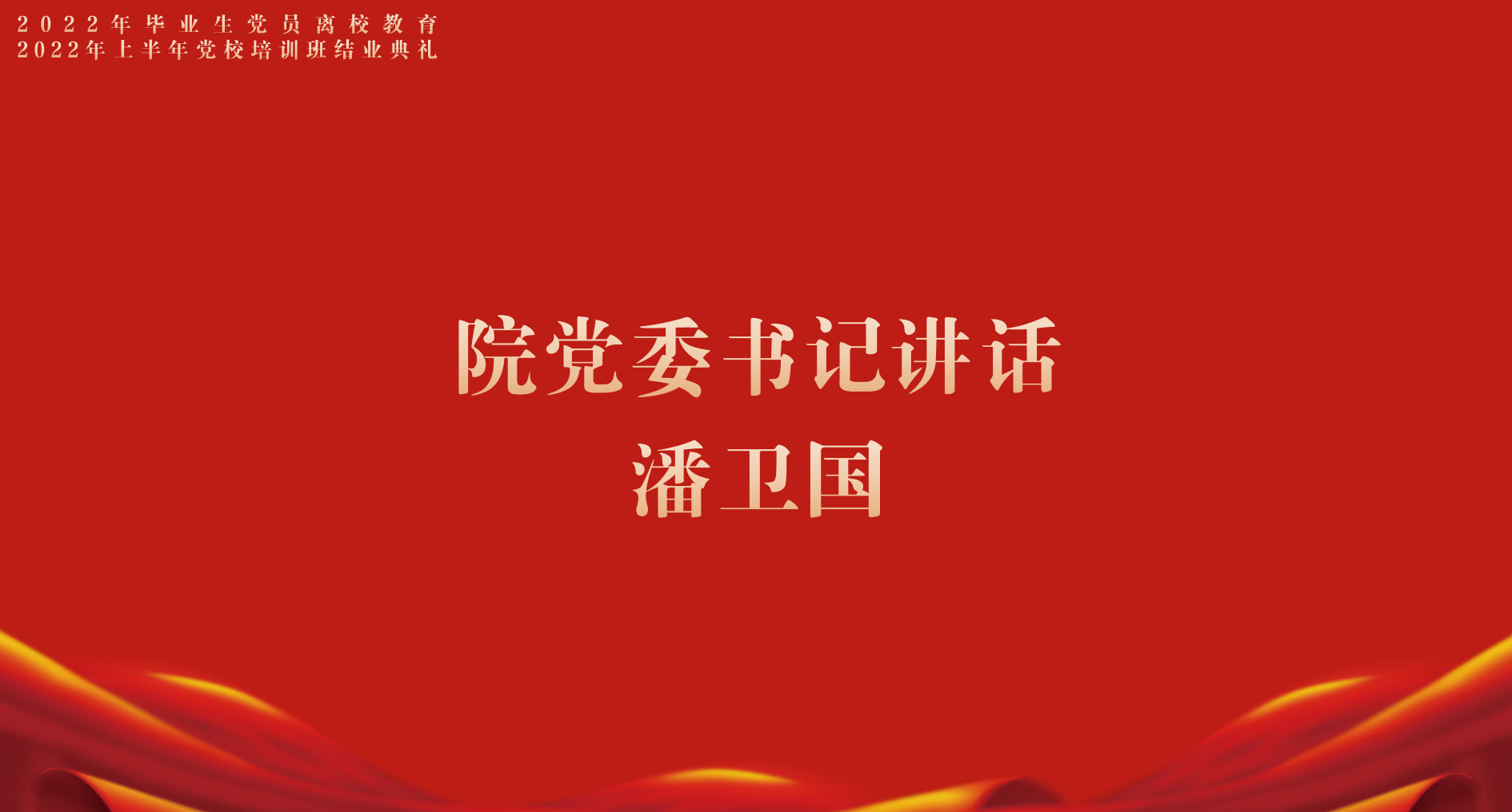 学院党委书记潘卫国老师指出,在今年防疫工作中,学生党员和志愿者展现出来的责任和担当,生动诠释了为人民服务的宗旨。潘老师号召毕业生党员和党校培训班学员要秉持这份责任与担当,要始终坚持人民立场、践行使命、勇于作为。希望毕业生党员用实际行动践行伟大建党精神,希望党校培训班学员继续加强学习,用自己的知识和才干服务同学、服务班级、服务学院。