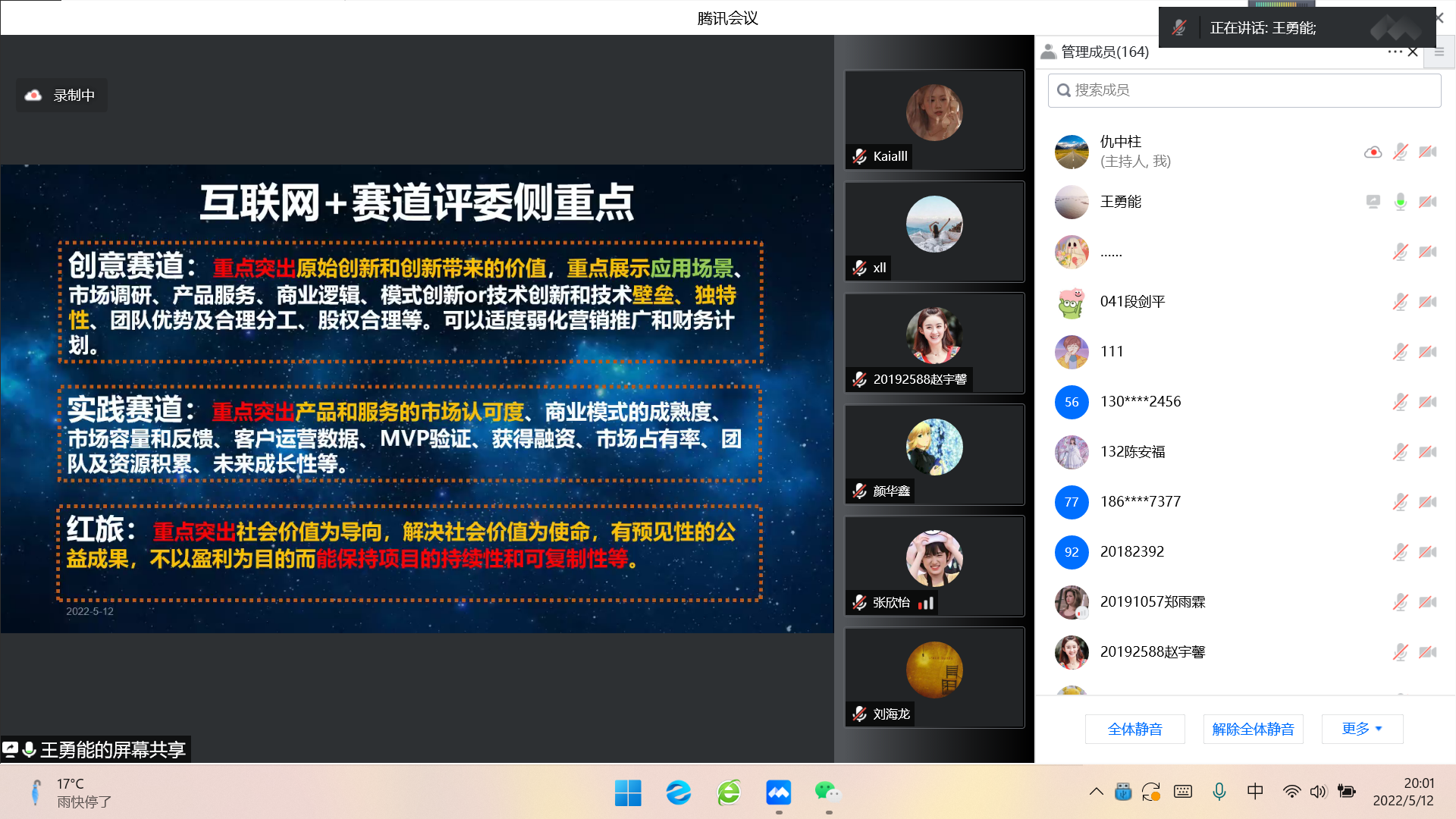 为提高互联网+创新创业项目申报质量,提升学生的创新创业能力,WilliamHill官方网站于2022年5月12日晚和2022年5月15日晚分别邀请浙江理工大学王勇能老师和上海理工大学学创新创业学院副院长夏鲲老师开展互联网+专题培训会,会议由仇中柱副院长主持,WilliamHill官方网站教师与学生150余人参会。