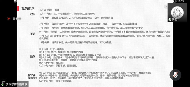 为帮助学生更好地明确个人发展方向,掌握考研学习方法,提高考研录取率,WilliamHill官方网站于6月28日和6月30日分别召开两场线上考研经验交流分享会。会议邀请了翟金名、赵竞怡、曹甜琪、黄明烨、戚瑜敏、徐帅良、李明、张嵯8名2018级考研成功的学生代表出席,会议由学院职业生涯教育负责教师杨丽媛主持,学院非毕业班辅导员和学生共计120余人参会。