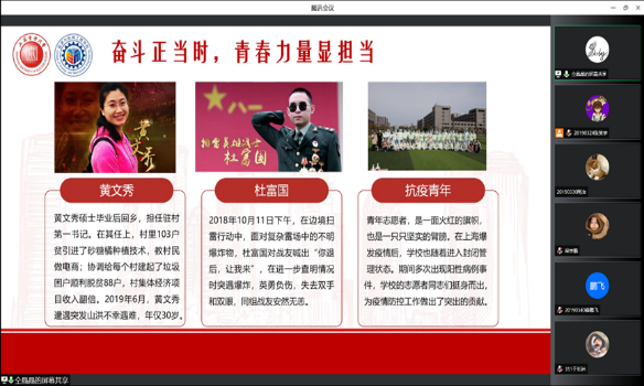 在开学之初,为引导广大学生以全新的面貌迎接新学期的到来,各年级辅导员借助首日教育,在829日至98日,先后组织所带班级学生学习了《新时代的中国青年》白皮书。各年级辅导员围绕新时代的中国青年“生逢盛世、共享机遇,素质过硬、全面发展,勇挑重担、堪当大任,胸怀世界、展现担当”等四个方面,通过视频短片、事例展示、校园战疫故事分享交流等多样化的方式,带领同学们解读了白皮书的主要内容,引导同学们深层次理解青年一代所肩负的使命担当,在时代浪潮中主动作为,做勇于走在时代前列的奋进者、开拓者、建设者。此外,各年级辅导员也着眼于不同年级学生的特点和需求,有针对性地围绕课程学习、专业发展、科创竞赛、考研就业等方面进行了详细分析与指导。此次年级大会,在进行理论学习的同时兼顾了学生们的实际,做到了分层分类培养人才,教育效果显著。