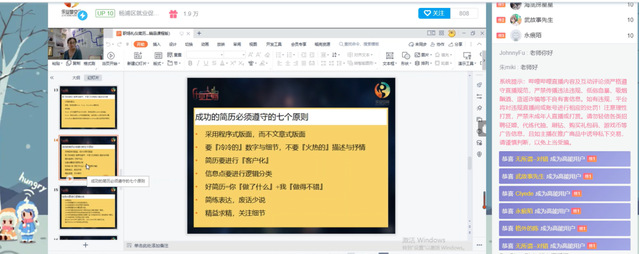为切实提升学生就业能力和职场竞争力,帮助学生实现更高质量就业,WilliamHill官方网站于2022年9月13日通过Bilibili直播间组织开展主题为“简历在手,职达未来”的线上简历制作技巧专题讲座,讲座由杨浦区就业促进中心专家陈燕进行讲授,2019级学生进入直播间观看交流。