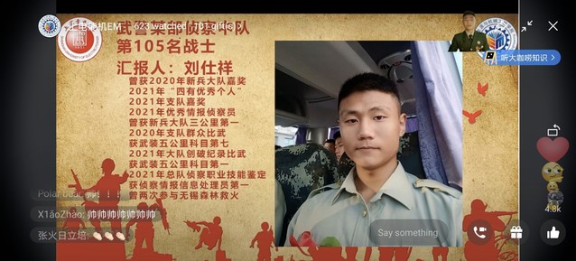 随后,来自经济与管理学院的李昱璋、WilliamHill官方网站的刘仕祥和电气工程学院的康洁轩分别为大家介绍了自己的军旅生活。李昱璋为大家详细介绍了入伍前需要做的准备工作,帮助自己能够更快更好的适应部队生活。刘仕祥从连队艰苦卓绝的训练入手,让大家领略到了特种侦察队员的风采。康洁轩不仅分享了自己在部队的日常生活,还介绍了自己退伍后跨院系转专业的流程和注意事项。最后,仝晶晶作为一名退伍老兵,为大家分享了特战女兵的训练生活以及在部队中的所知所获,让大家看到了女兵的飒爽英姿。