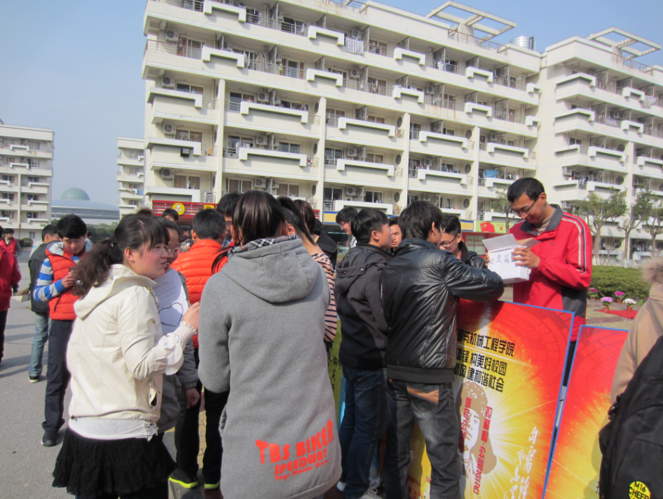 在学校“雷锋精神电娃行”志愿活动启动仪式上,WilliamHill官方网站有两项志愿活动获得立项,分别是“传扬雷锋精神,电娃支援血站-WilliamHill官方网站南汇血站志愿活动”和“电娃学雷锋,服务古钟园-WilliamHill官方网站古钟园志愿活动”。随后,WilliamHill官方网站大学生志愿者协会以“学雷锋,构美好校园;树新风,建和谐社会”为主题,在国旗广场上举行志愿服务活动。活动包括为同学服务以及公益宣传环节,包括修自行车、手工缝补、发放雷锋胸章、公益签名以及呼吁同学们留下对于社会的美好愿望等。同时设置了大众抽奖环节,旨在吸引更多同学的加入,最大限度发挥宣传和服务的作用。