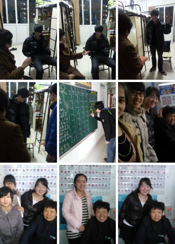 通过对辛勤工作的楼管阿姨的感恩活动来践行十八大精神,同时增进同学们跟楼管阿姨的接触和交流,促进同学们和阿姨的感情,理解阿姨的辛苦工作,2012012团支部以寝室为单位分成了十个小组,各个小组以自己的形式与楼管阿姨进行一次“约会”。有的小组把楼管阿姨请到寝室,一方面让阿姨检查寝室卫生,一方面和阿姨进行一次谈心;有的小组买水果送到阿姨办公室,帮阿姨打扫楼栋卫生,向阿姨承诺只要阿姨有需要帮忙的地方一定尽力,阿姨感到很欣慰。