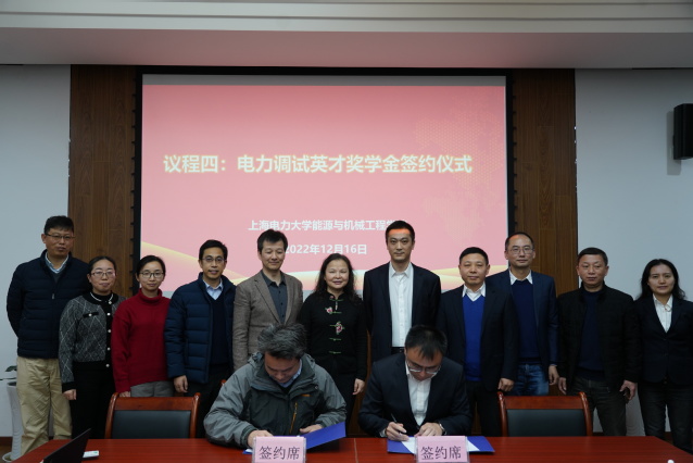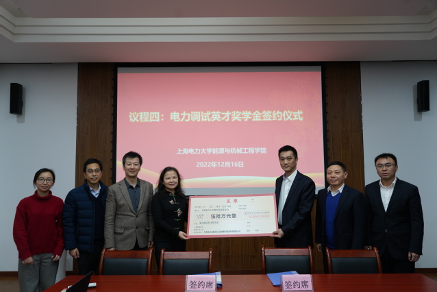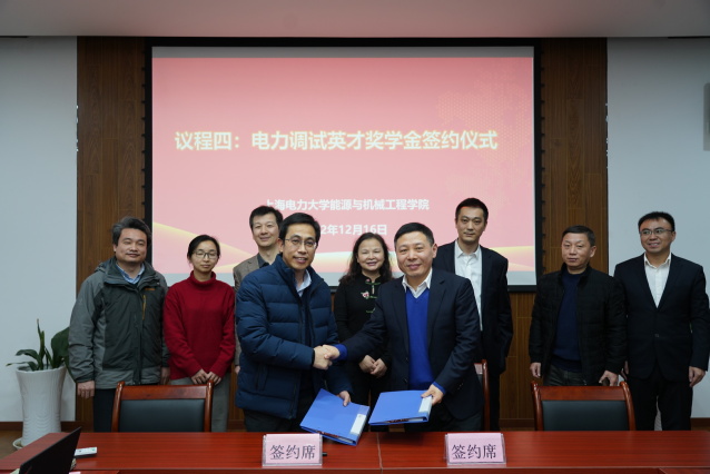 捐赠仪式中,上海电力建设启动调整试验所有限公司向学校教育发展基金会捐赠五十万元并设立电力调试英才奖学金,校长办公室主任、基金会理事长李兆鹏和上海电力建设启动调整试验所有限公司副经理茆顺涵代表校企双方签署捐赠协议,张川代表学校向上海电力建设启动调整试验所有限公司颁发捐赠证书。