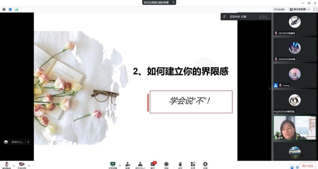 为有效引导新生优化个性心理品质、提高心理调适能力,构建良好可持续的人际交往关系,尽快完成大学生活的调整和适应,12月16日13:30,WilliamHill官方网站组织全院新生齐聚云端,开展了一场主题为“大学生的人际沟通”的专题讲座,讲座由校心理健康教育中心专职心理教师过爱主讲。