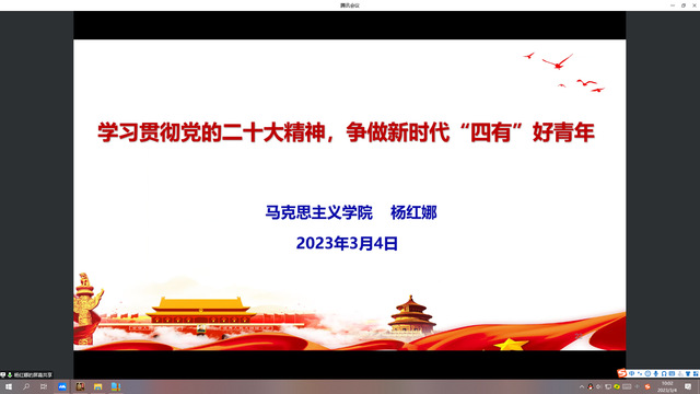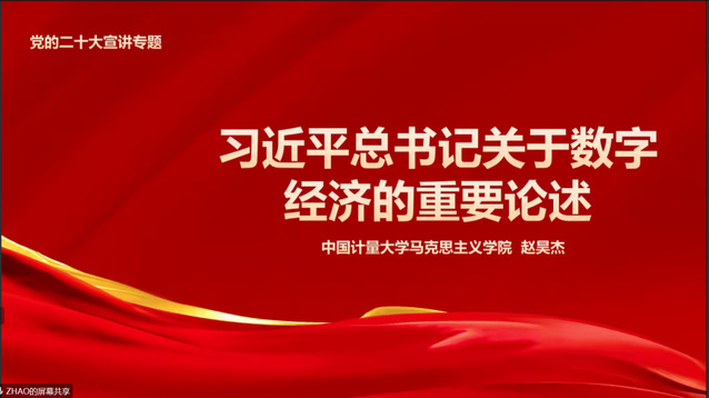 1030分第二场是发展对象和入党积极分子共享课,由赵昊杰老师作了题为《习近平总书记关于数字经济的重要论述》的讲座。赵老师从发展脉络、数字经济与“统筹国际两个大局”、二十大报告中涉及数字经济的内容、推进数字经济发展的路径四个方面进行讲解,通过解读数字经济的发展、人民生活水平的提高,诠释了中国共产党全心全意为人民服务的宗旨。