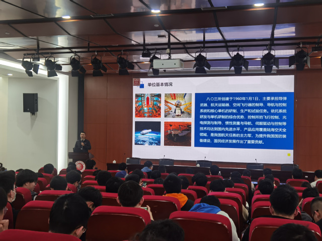 陆佳伟对八〇三研究所的基本情况进行了介绍,同时结合自身经历从个人职业发展路径、就业方向抉择、就业法律保护等各方面内容进行了详尽的讲解和分析。结合自己毕业后发展过程的几个阶段,与同学们分享在自己“慎重选择、全力以赴;把握机会、顺势而为”的职业发展历程;以“一份月薪2.5万,一份月薪8千”这样生动的案例故事,抽丝剥茧地和同学们分析企业工资和福利待遇之间的区别和联系;从“五险一金”“社保基数”“税后收入”等与每个职场人息息相关的数据,解读如何更好地对自己负责、更全面地做好自我保护。