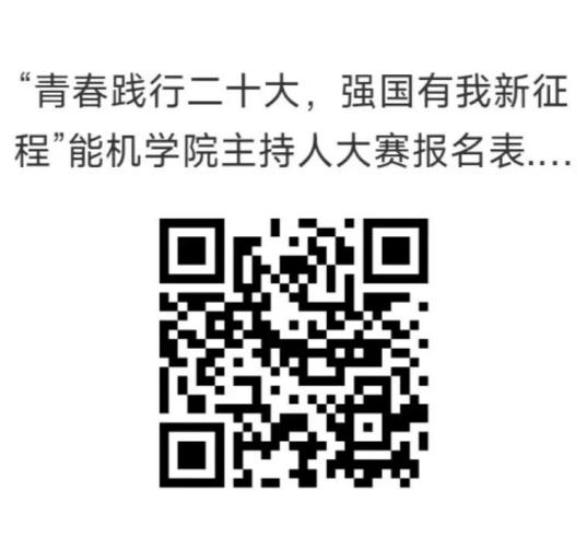 报名方式:选手需统一填写电子版《“青春践行二十大,强国有我新征程”WilliamHill官方网站主持人大赛报名表》,报名表以“姓名+学号+报名表”格式命名,发送至文艺部邮箱:1613028123@qq.com,报名截止至4月2日晚20:00。同时用QQ扫描下方二维码进群:加群请注明班级、姓名、学号,决赛前会有相应培训。