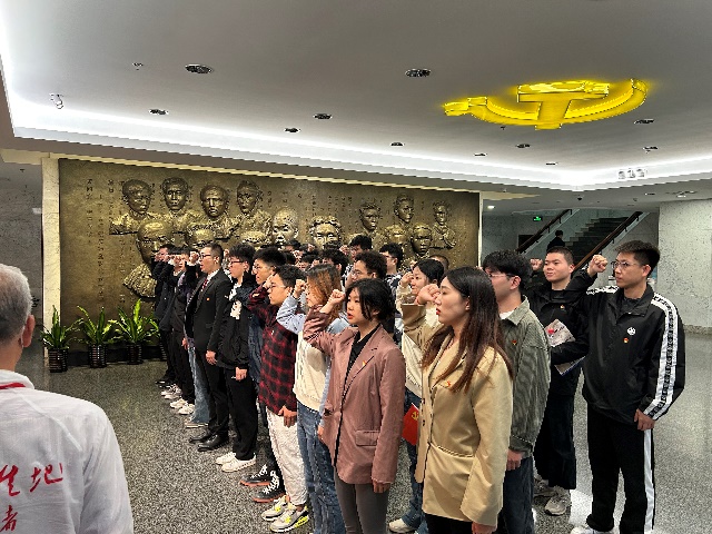 随后到中共一大会址进行重温入党誓词,由王喆老师领誓,党员同志们紧握右拳,郑重而庄严地宣读了入党誓词,铿锵有力的誓言、掷地有声的承诺,响彻大厅。