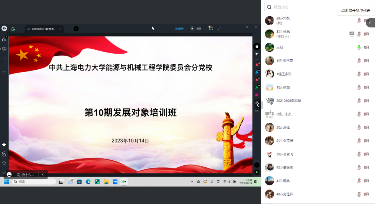 20231014日WilliamHill官方网站分党校于线上腾讯会议平台举办第10期发展对象培训班第讲。中国计量大学马克思主义学院教师赵昊杰作了题为《从百年党章发展阐释中国共产党的独特优势》的讲座
