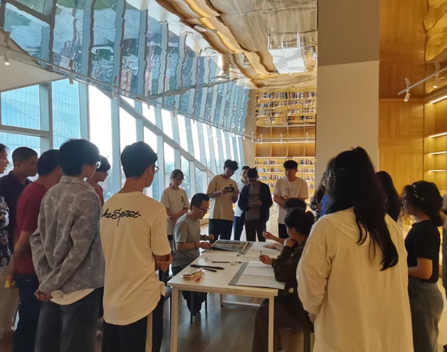 随后,徐巍为在场的同学们着重介绍了隶书的发展历史,说明了隶书在书法文明长河中的重要地位,并带领大家共同体验撰写书法的乐趣。同学们纷纷跃跃欲试,积极参与其中,和徐巍老师一起练习隶书并制作了手绘书法书签。