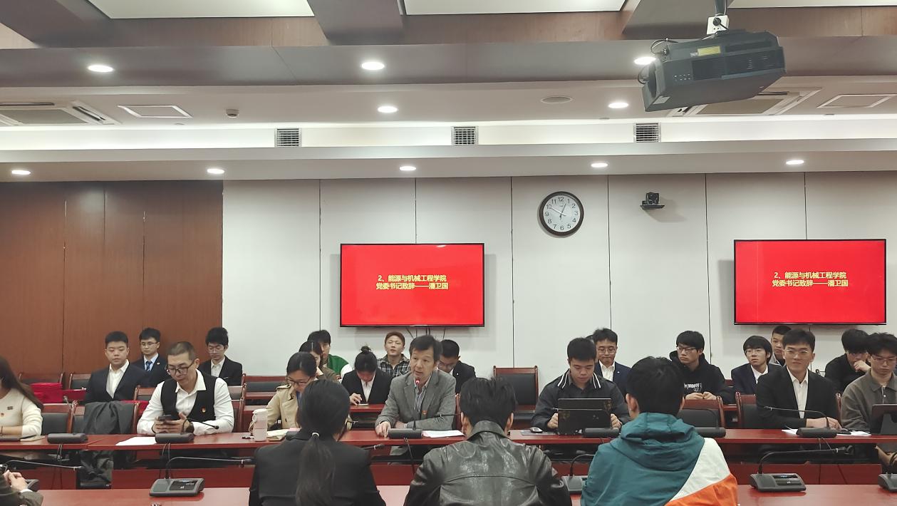 首先,学院党委书记潘卫国同志致辞,潘老师对本次党校培训班进行了回顾,此次培训班自10月08日开班,至10月26日考试结束,为期近半个月的培训中,党校制订了科学周密的教学计划,既有理论学习,又有小组专题学习和研讨。潘老师提出了三点希望,一是继续深入学习,将《中国共产党章程》、党的二十大精神和习近平新时代中国特色社会主义思想作为学习的重点,做有理想、敢担当、能吃苦、肯奋斗的新时代好青年;二是进一步端正入党动机,深化思考如何提升自我,时刻牢记党的根本宗旨并用实际行动证明;三是在生活中充分发挥先锋模范作用,以党员的高标准要求自己。在学习、工作、生活等各个方面起到表率作用。