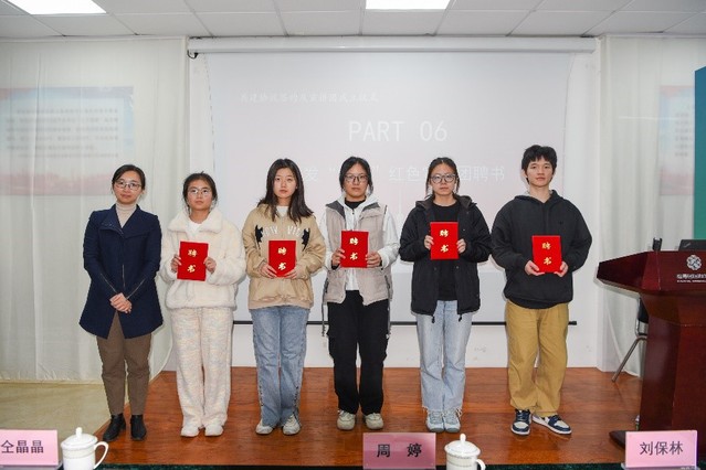 周婷为“学志”宣讲团的10名成员颁发聘书,激励同学们要不忘初心、牢记使命、学红色精神、立报国志向,成为可以担当民族复兴大任的时代新人。