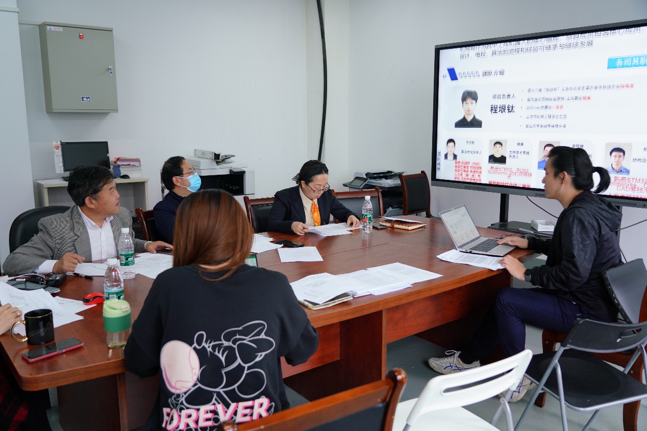 各团队从项目设计的背景意义、设计原理、在节能减排方面的创新等方面一一进行了汇报,评委对作品的规范性、设计的性能参数、节能减排方面的创新性与可行性等方面进行了提问,并对相关作品提出修改完善建议和意见。