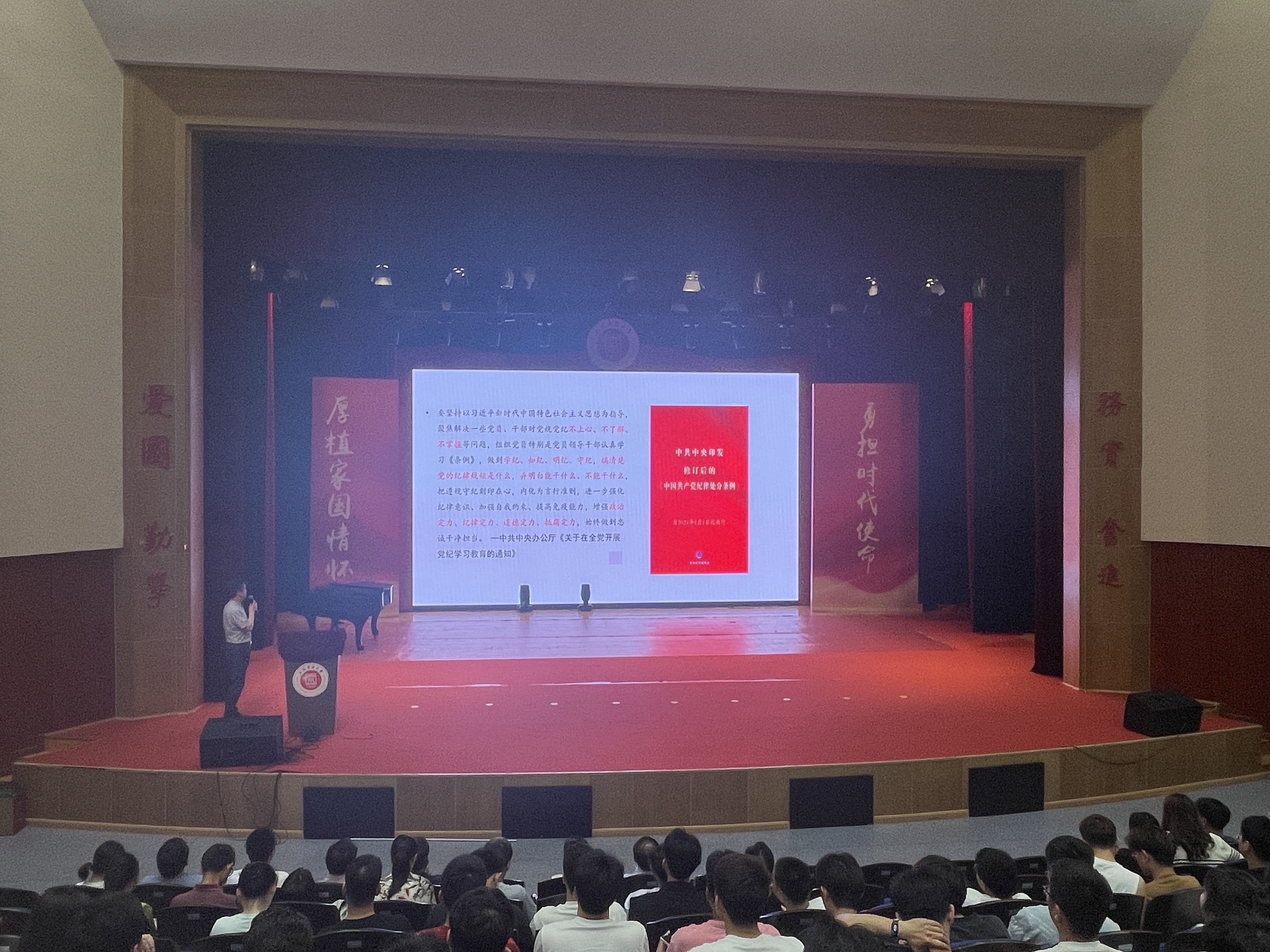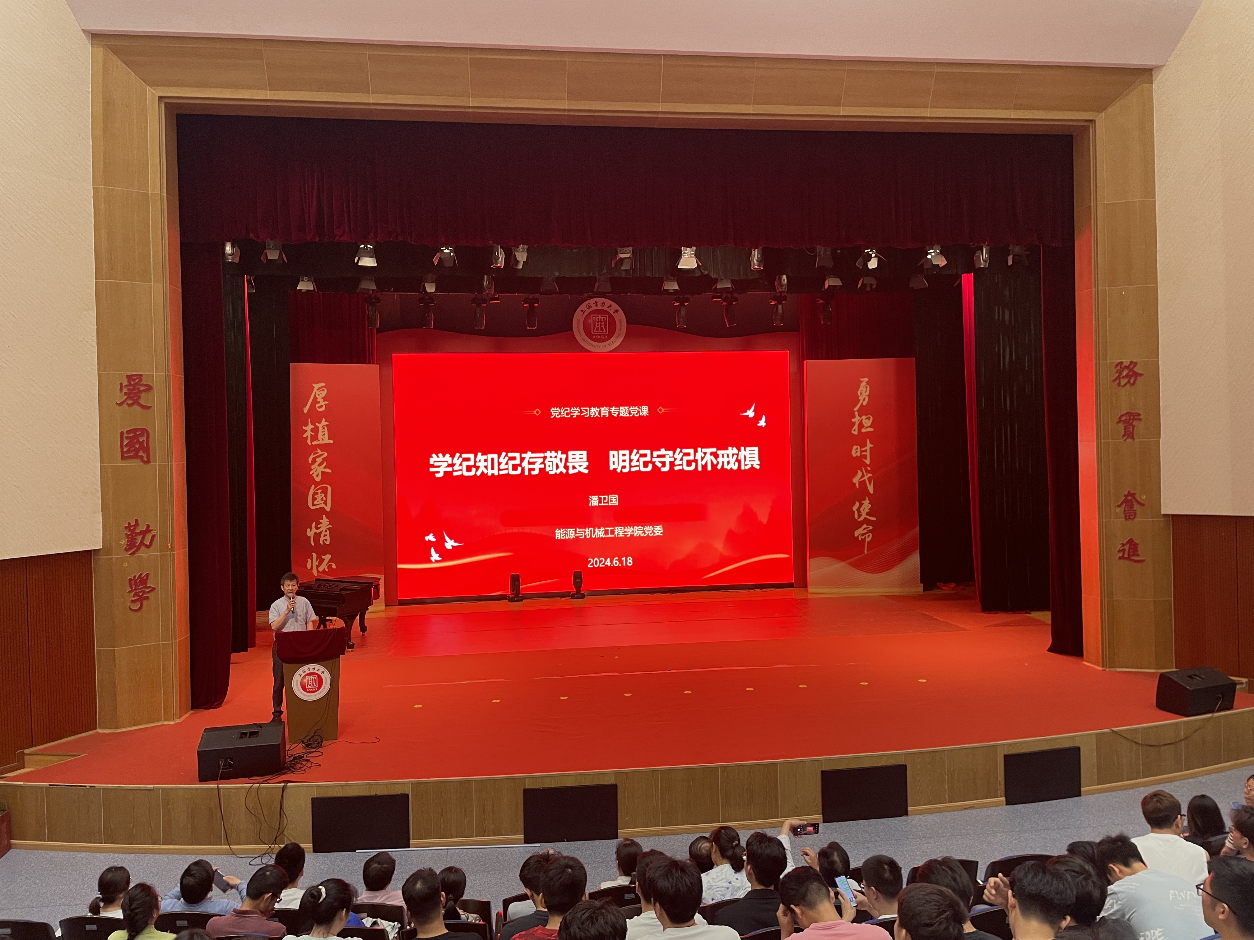 6月18日,WilliamHill官方网站党委书记潘卫国以“学纪知纪存敬畏 明纪守纪怀戒惧”为主题,讲授党纪学习教育专题党课,WilliamHill官方网站全体师生党员参加学习。