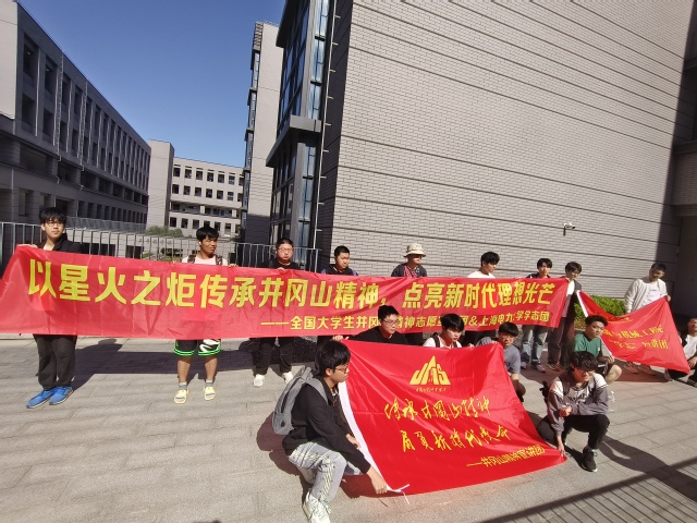 丰富宣讲开展形式,拓展精神传承场域。在用理论武装头脑的同时,团队成员将井冈山精神宣讲与生动活泼的体育活动相结合。成员策划并参与了“井冈山精神表白跑”活动,以临港新片区滴水湖为打卡场所,以团队答题、折纸传情、以舞育人、共唱红歌等方式传承井冈山精神。为同学们精心策划“农村包围城市”打卡路线,通过寻找线索获取“革命”的最终胜利。组织同学报名前往福寿园海港陵园,为先烈祭扫,传承革命精神。