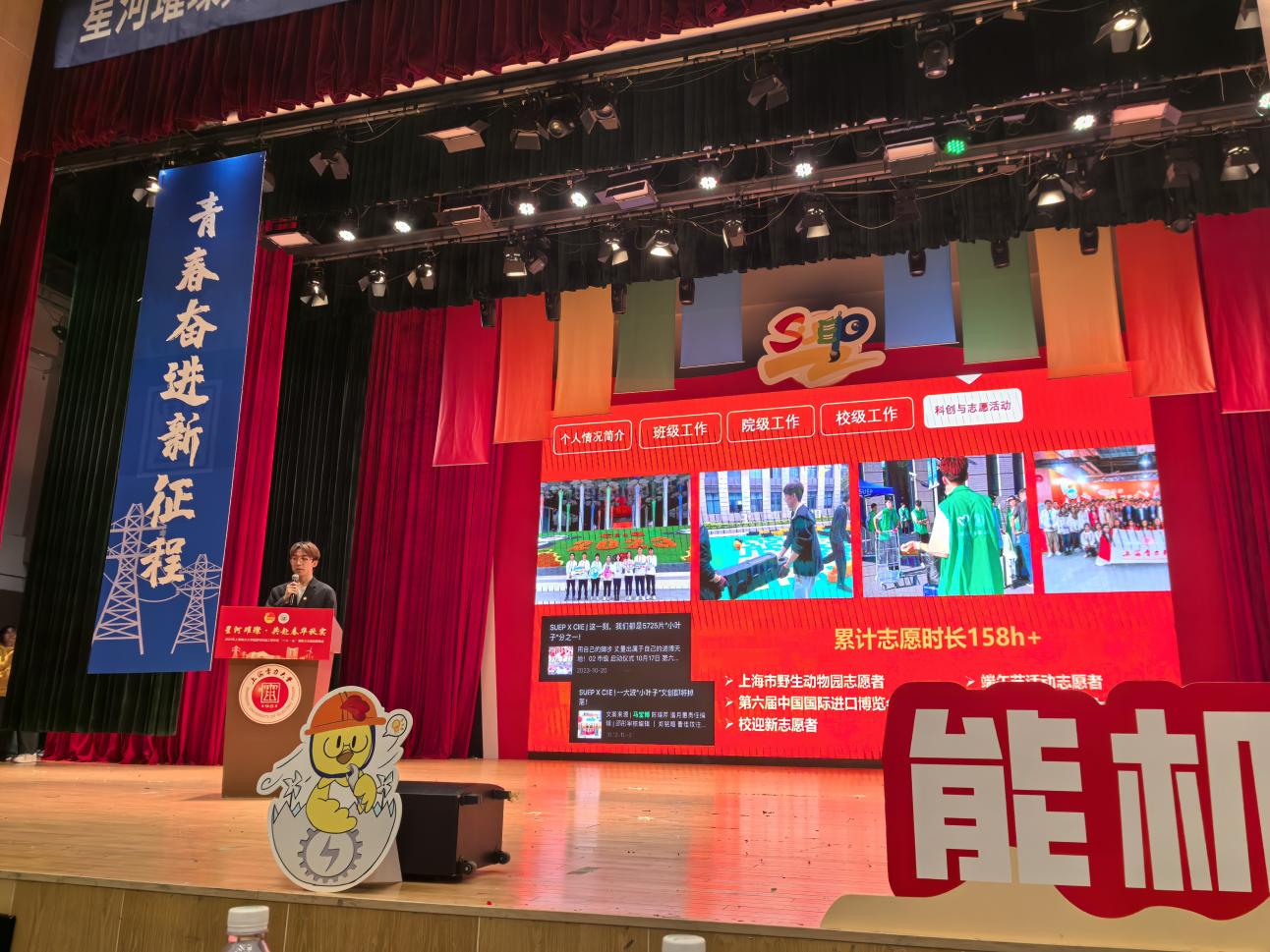 获得“上海市活力团支部”、“上海市活力社团”的2021172班、成图工作社代表进行了现场交流分享,分别从班级建设和社团打造两个维度出发,全方位展现了独特的集体魅力与青春风采。优秀学生干部标兵马宝博展示了自己的工作经历和成长历程,分享自身成长中的感悟和思考,他身上那种勇于奉献、敢于担当的品质让在场的同学深受启发。