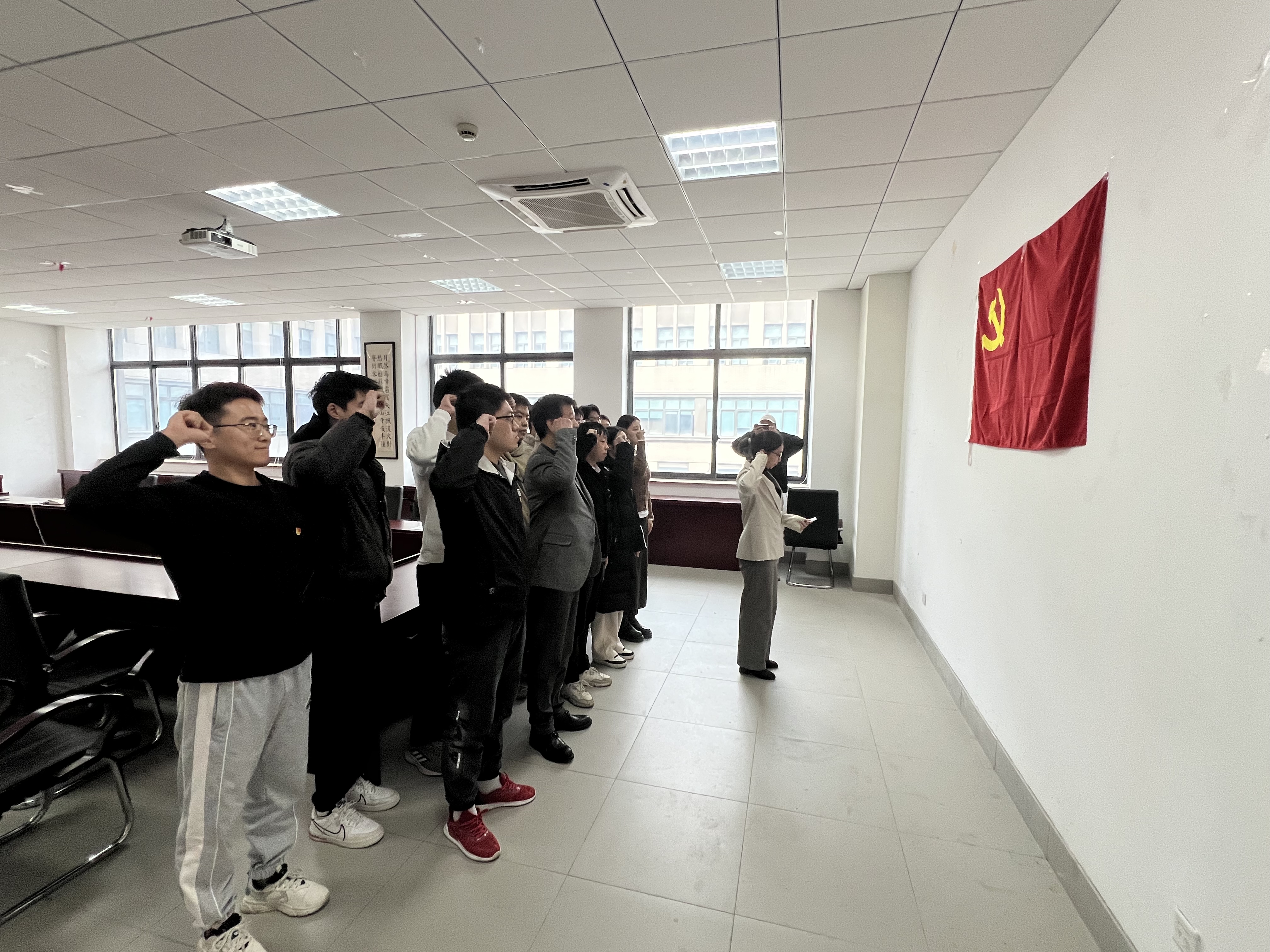 入党宣誓仪式在庄严的《国际歌》中拉开序幕。潘卫国发表讲话,对新发展的预备党员表示祝贺,并提出三点期望:一是加强理论学习,提高理论素养,与时俱进,永葆共产党员先进性;二是牢记党的宗旨,全心全意为人民服务,坚定“四个自信”、增强“四个意识”、做到“两个维护”;三是发挥模范作用,从实际出发,从学习、工作、生活等各方面起到模范带头作用。